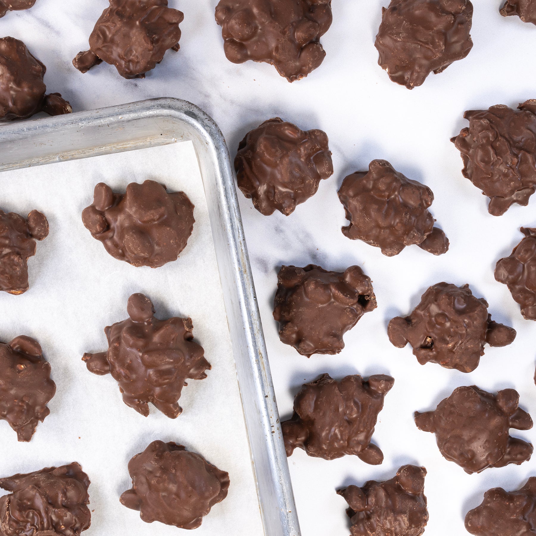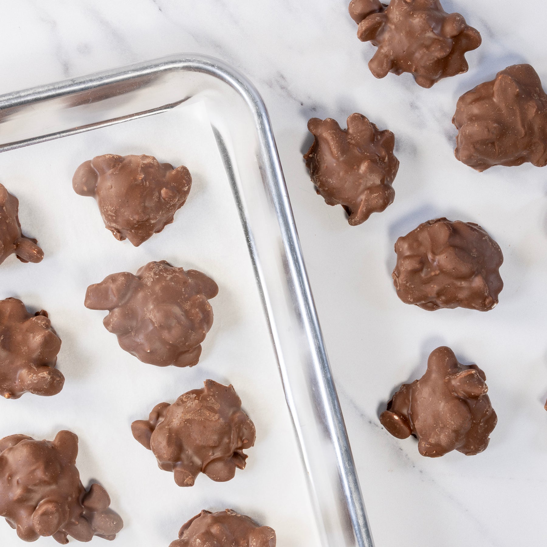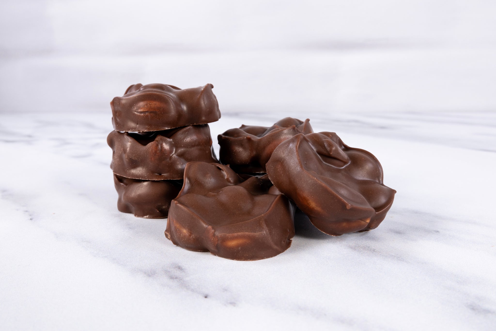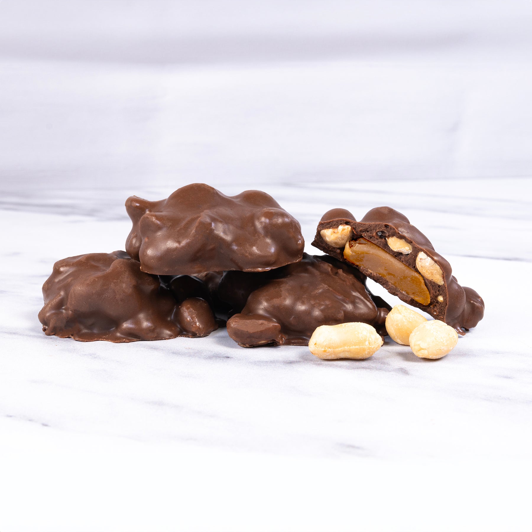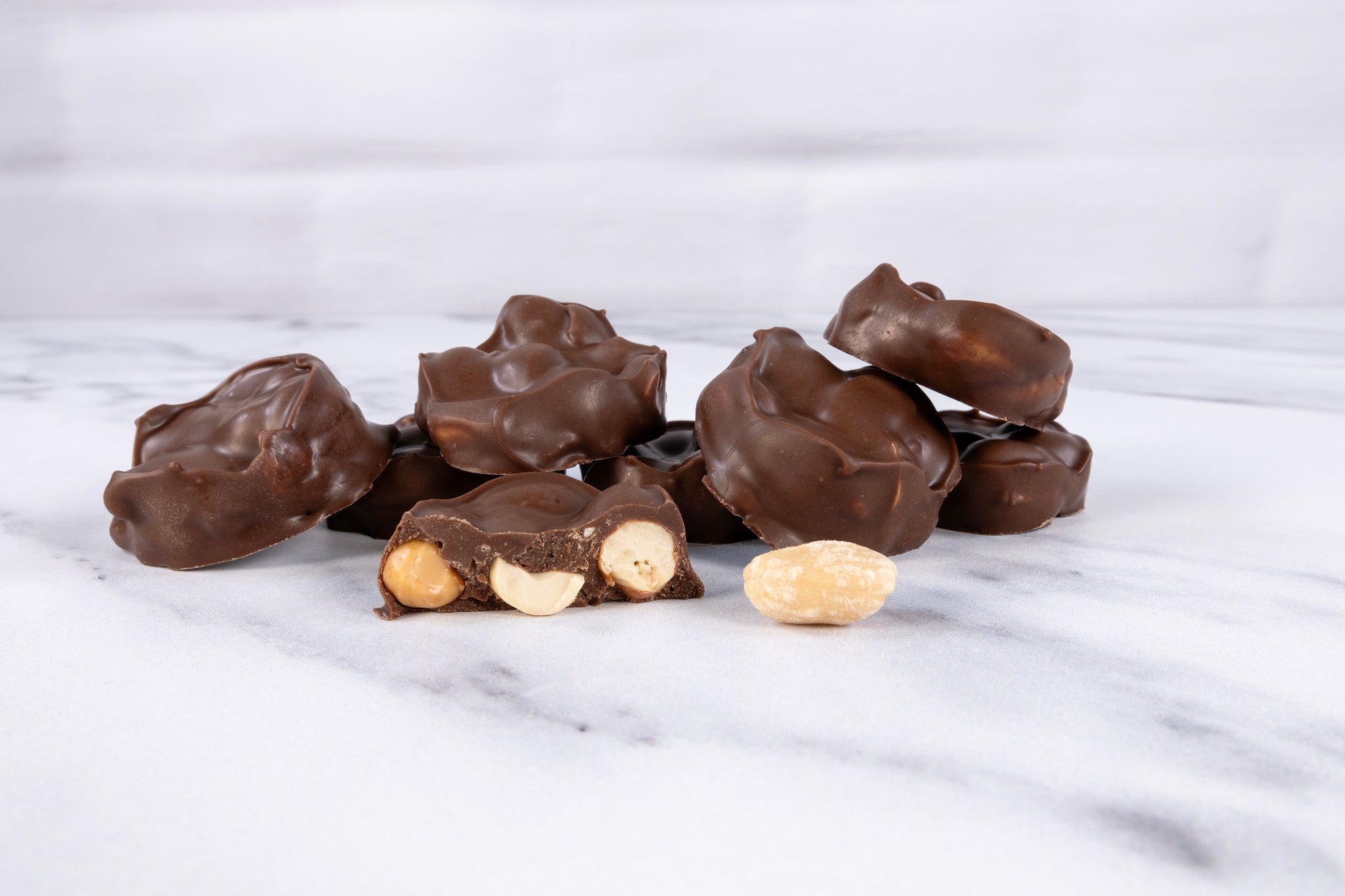 Oil roasted and salt peanuts encased in our Palmer blend milk chocolate. Product Description: Round Cluster of peanuts and milk chocolate. Ingredients: Oil Roasted Peanuts...
