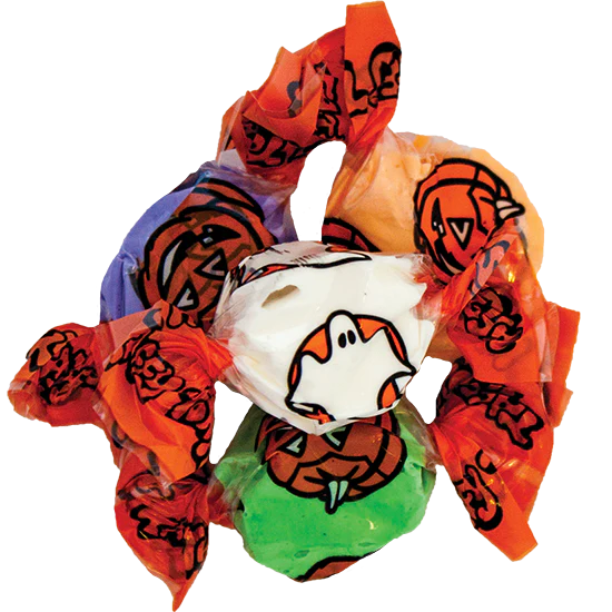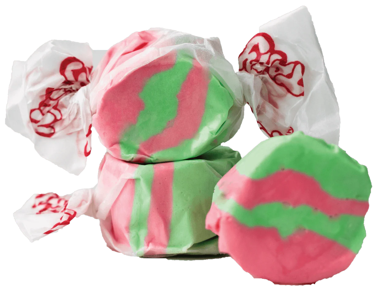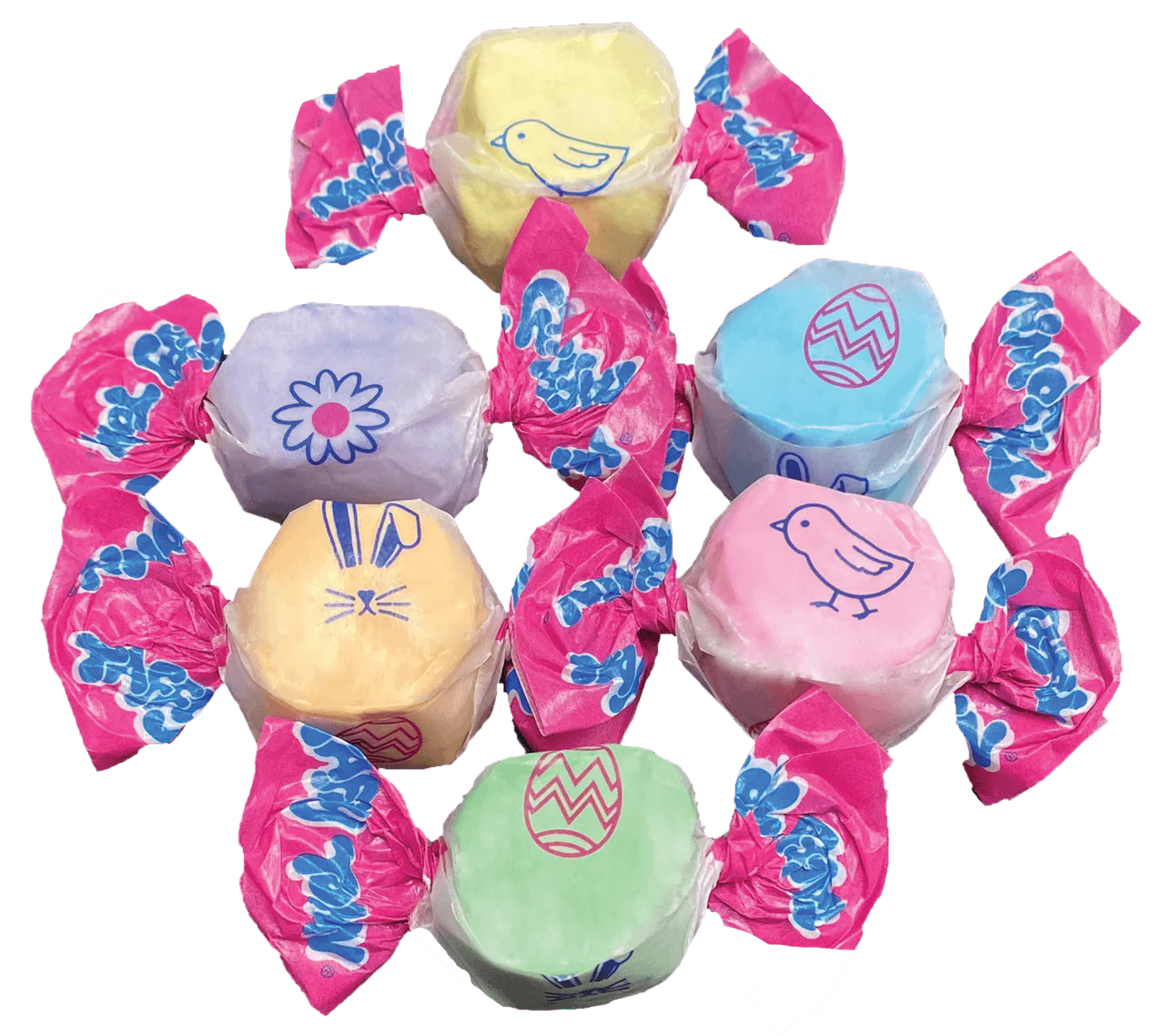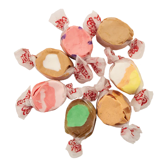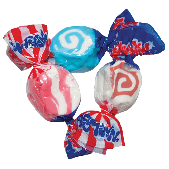 Assorted Saltwater Taffy has the flavors: Banana, Grape, Orange Cream, Raspberry, Watermelon, Cherry, Chocolate, Cinnamon, Frosted Cupcake, Cotton Candy, Caramel Apple, & Strawberry Cheesecake. Stars...